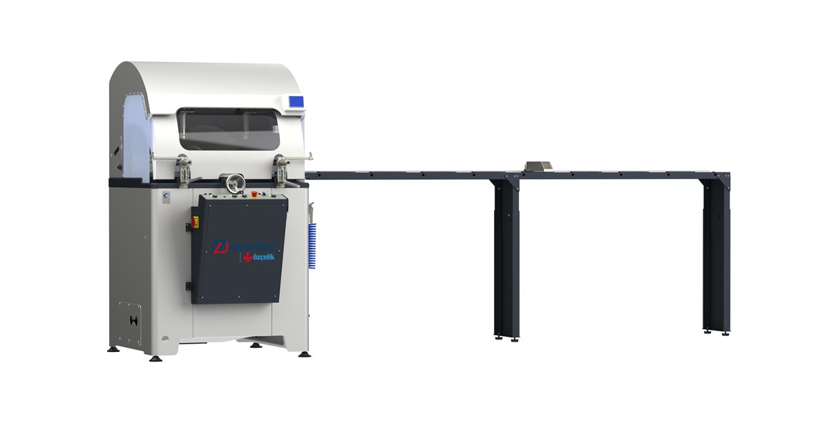 Scie à lame montante automatique Ø 700 mm avec convoyeur à rouleaux de 3 m