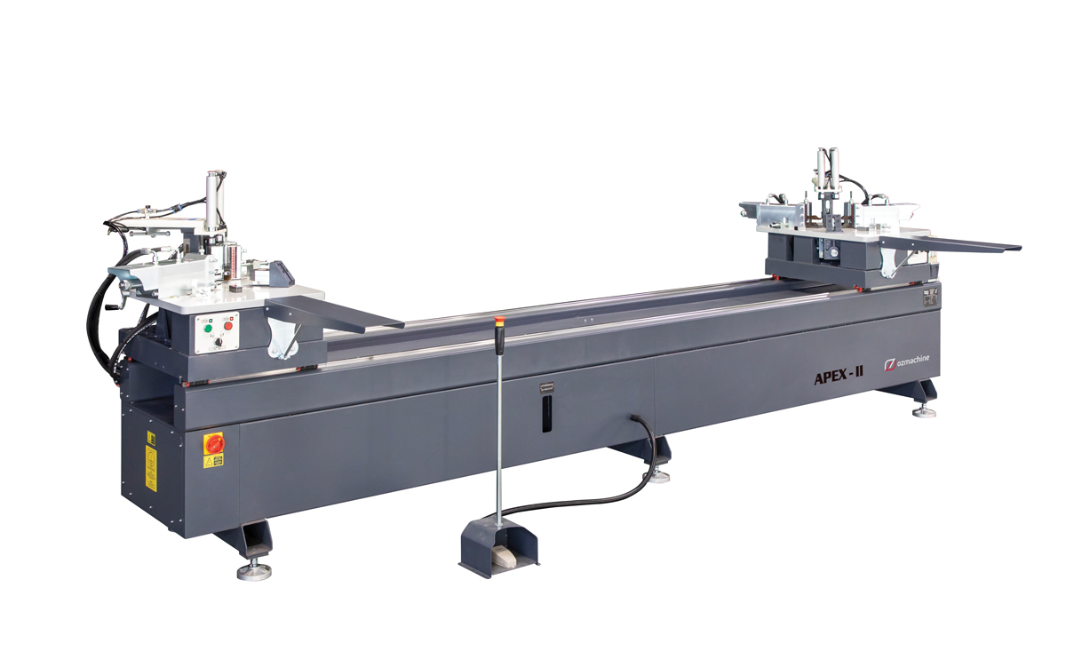 APEX – II, dotata di sistema idraulico automatico a doppia testa per la crimpatura degli angoli, viene utilizzata per i processi di giunzione angolare dei profili in alluminio. Grazie alla precisione di misurazione manuale e alla potenza del sistema idraulico integrati nel corpo macchina, offre agli utenti soluzioni rapide. APEX – II garantisce un processo di giunzione angolare perfetto riducendo al minimo gli errori dell’utente grazie al suo sistema di pressione a doppio stadio.