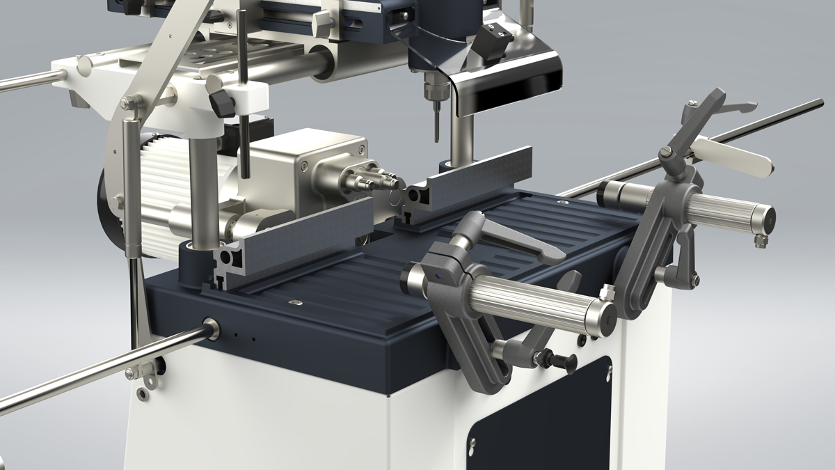 Se utiliza para cortar ranuras adecuadas en perfiles de aluminio y plástico para el montaje de cerraduras, tiradores, bisagras, pestillos y canales de apertura.