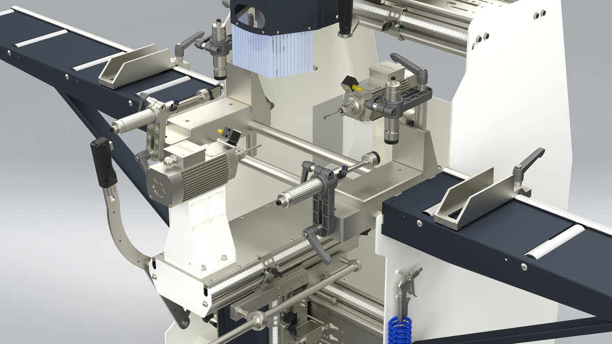 Se utiliza para procesos de apertura de cerraduras, manillas, bisagras y pestillos, así como de canales, mediante la rotación del perfil en tres superficies de perfiles de aluminio y plástico.