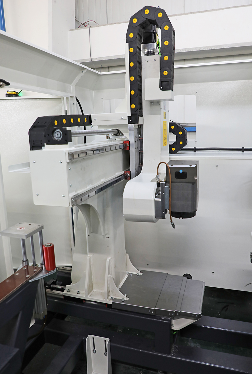 GARNET PORTA es una máquina de procesamiento de puertas de 4 ejes. Está diseñada para realizar operaciones como la colocación de bisagras, cilindros de cerradura, manillas, aberturas de ranuras, etc. en puertas ya terminadas. Selecciona automáticamente la herramienta que necesita de entre las 4 piezas disponibles en el almacén de herramientas estándar. Realiza las operaciones con el motor HITECO de 5,6 kW servocontrolado que lleva incorporado. Puede procesar las superficies superior, inferior y frontal del perfil con un solo motor. Las dimensiones de las puertas que se pueden procesar son de hasta 3600 mm de longitud, 1400 mm de anchura, 150 mm de altura y 200 mm de anchura de superficie.
