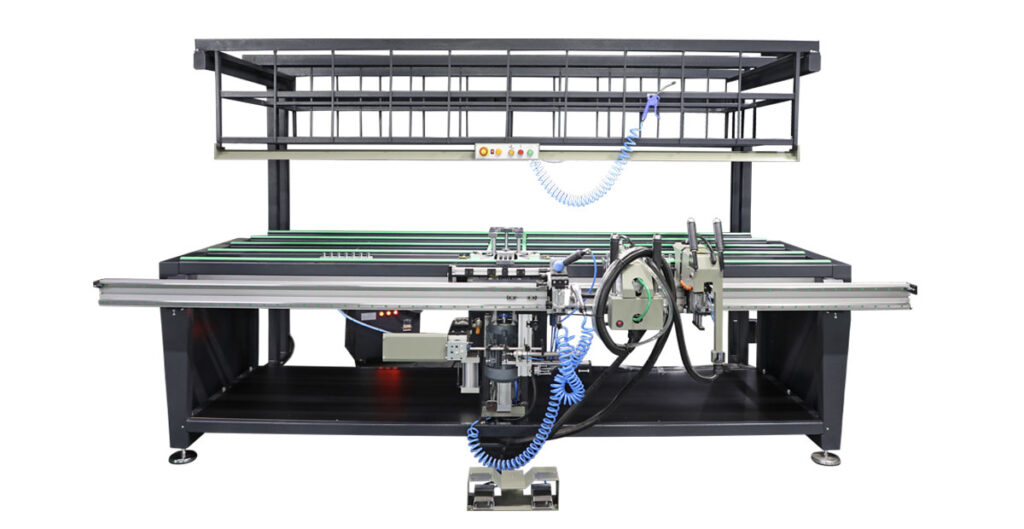 Se utiliza para montar todos los sistemas de herrajes oscilobatientes en diferentes tipos y tamaños de perfiles de ventanas y puertas sin necesidad de utilizar cinta métrica ni lápiz, sin necesidad de moldes ni plantillas, lo que proporciona un montaje rápido, de alta calidad y estándar. Se utiliza para montar todos los sistemas de herrajes oscilobatientes en diferentes tipos y tamaños de perfiles de ventanas y puertas. El ajuste se realiza mediante un sistema automático giratorio después de seleccionarlo en la pantalla táctil. Adecuado para todo tipo de montaje de herrajes oscilobatientes y accesorios.