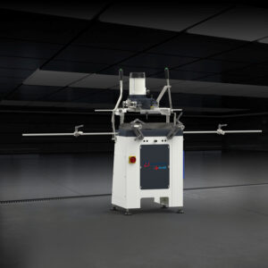 La máquina de entallado SPICA F está diseñada y construida para ofrecer múltiples posibilidades de entallado en combinaciones de perfiles de hojas, marcos, montantes y travesaños para muros cortina, jardines de invierno, claraboyas y procesamientos de diseño especial con ángulos especiales en el perfil y la superficie. Una unidad de trabajo que se mueve sobre un perfil fijado con abrazaderas automáticas horizontales y verticales, controlada manualmente mediante una guía lineal deslizante, realiza operaciones de corte utilizando dos sierras fijas.