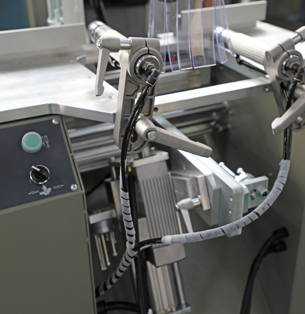 • Easy adjustment of motor travel distances according to profile dimensions with a rotary mechanism